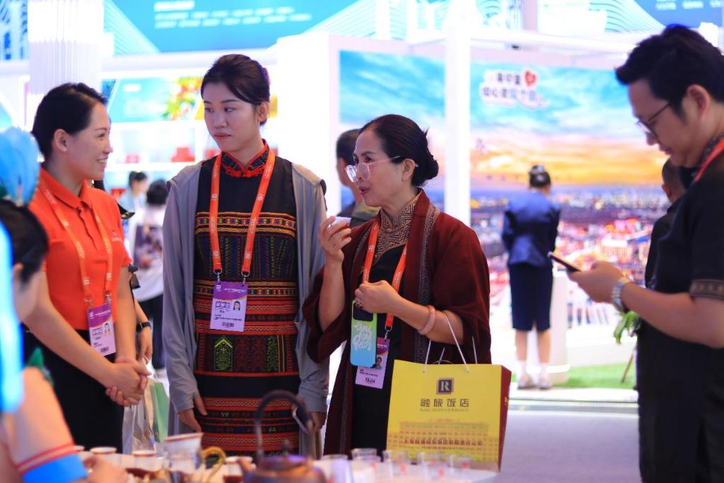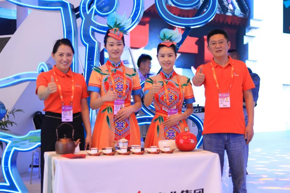 5月10日,中国品牌博览会现场,陈孟秋(左)和同事们在推介利川红茶。