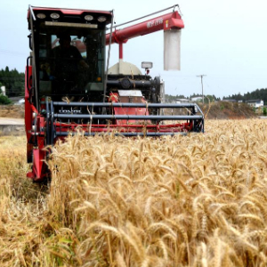 四川省德阳市中江县是四川的传统粮食生产大县。在该县永太镇石狮村,一台台收割机在金黄的麦浪中来回穿梭,抢抓农时收麦子。