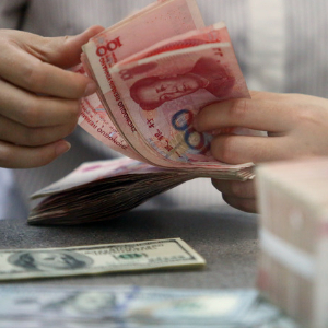 图为一家银行的工作人员清点人民币和美元。新华社发