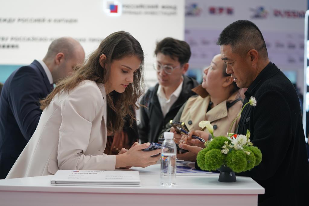 在中俄博览会现场,俄罗斯中小企业股份公司国际活动局副主任马克西姆·阿斯塔潘科夫,将前来咨询的中国企业的需求和联系方式一一记录在本子上,并将名片订在上面,非常认真。