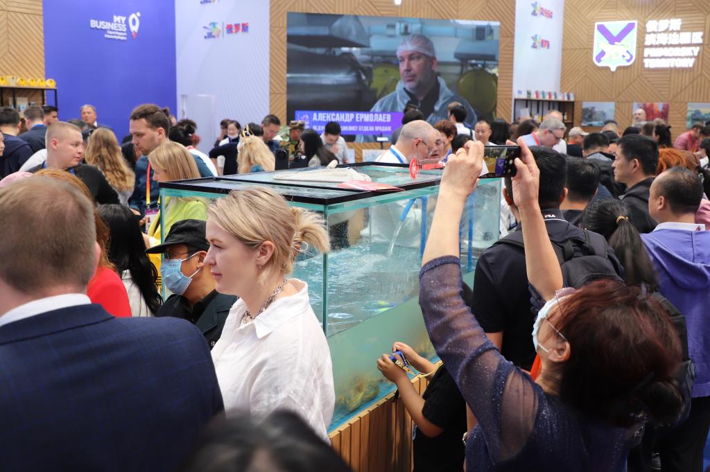 “蟹肉鲜甜,太有食欲了。”正在此间举行的第八届中俄博览会俄罗斯滨海边疆区展区人头攒动,美食品鉴活动吸引了大量游客和消费者前来品尝。