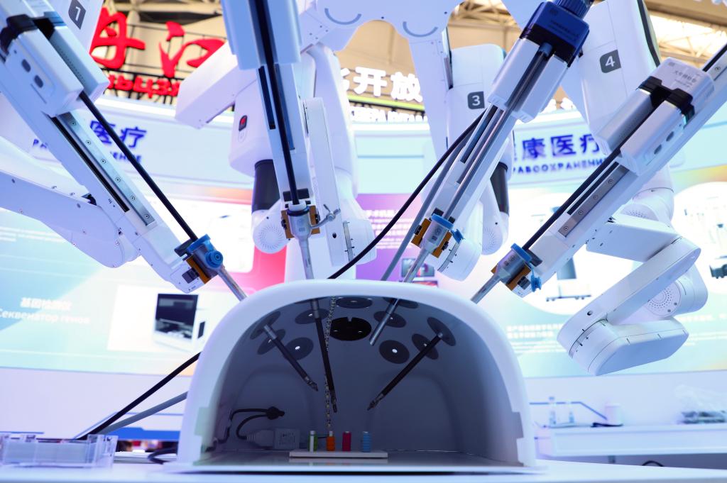 在哈尔滨展区,一款科技感十足的腔镜手术机器人吸引不少目光。这款由哈尔滨思哲睿智能医疗设备股份有限公司研发生产的机器人打破了相关技术壁垒,实现了国产替代。