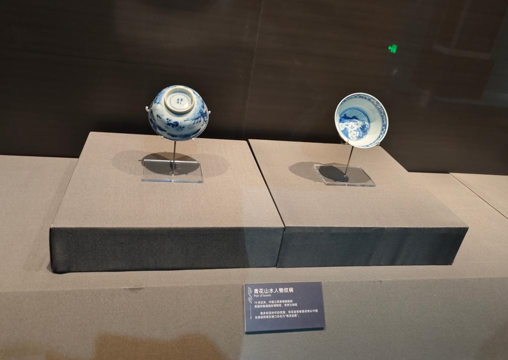 展览中展出的“青花山水人物纹碗”。 新华社记者洪可润 摄