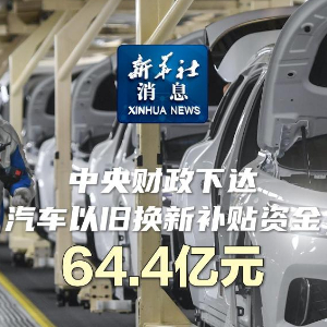新华社消息|中央财政下达汽车以旧换新补贴资金64.4亿元