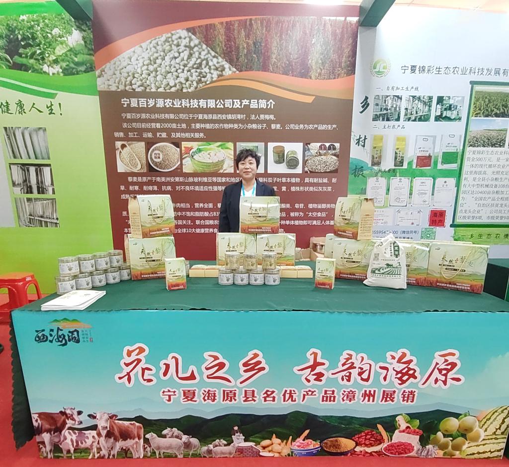 贾梅梅带着自己农场的产品到福建参加展销。受访者供图