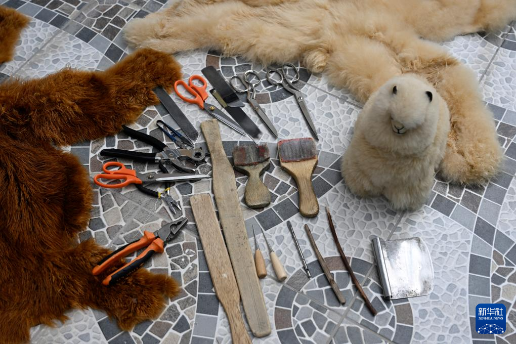 这是6月20日在秘鲁阿雷基帕拍摄的羊驼皮毛和手工制作羊驼玩偶所使用的工具。新华社记者 李木子 摄