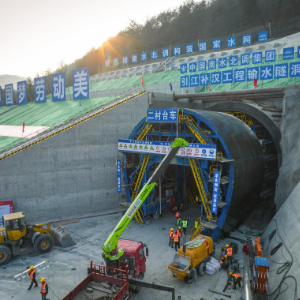 1月8日在湖北省襄阳市保康县马良镇拍摄的引江补汉工程输水隧洞8号平洞施工现场。新华社记者肖艺九 摄