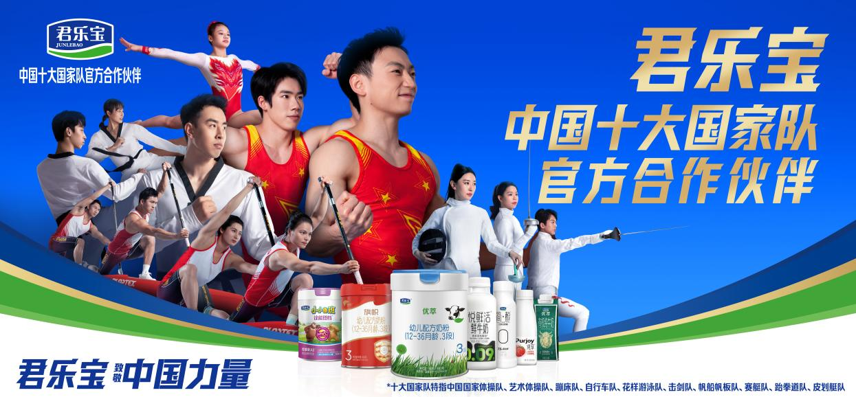7月5日,君乐宝乳业集团正式官宣成为中国十大国家队(中国国家体操队、中国国家花样游泳队、中国国家自行车队、中国国家击剑队、中国国家蹦床队、中国国家跆拳道队、中国国家赛艇队、中国国家皮划艇队、中国国家帆船帆板队、中国国家艺术体操队)官方合作伙伴,用高品质乳品为运动健儿提供鲜活营养支持,鼎力支持十大国家队勇创佳绩,在赛场上展现中国力量。