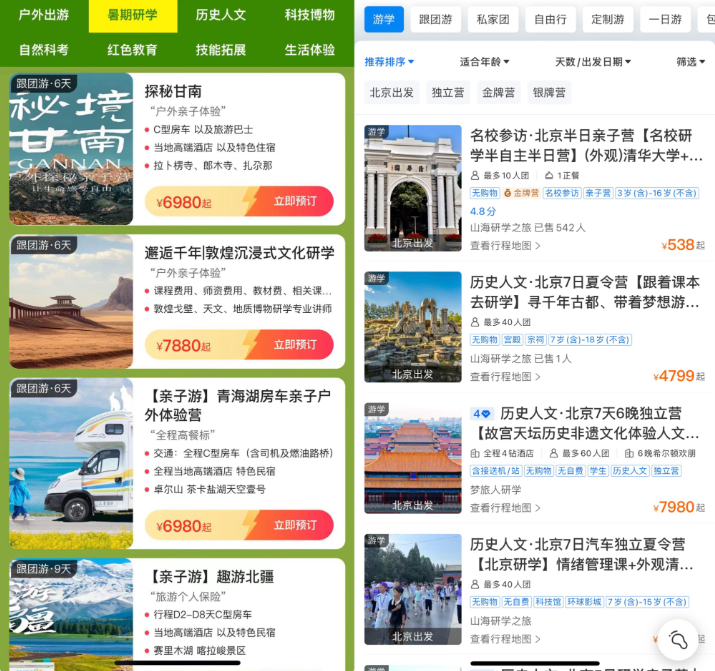 暑假来临,各式研学旅行项目受到消费者青睐。