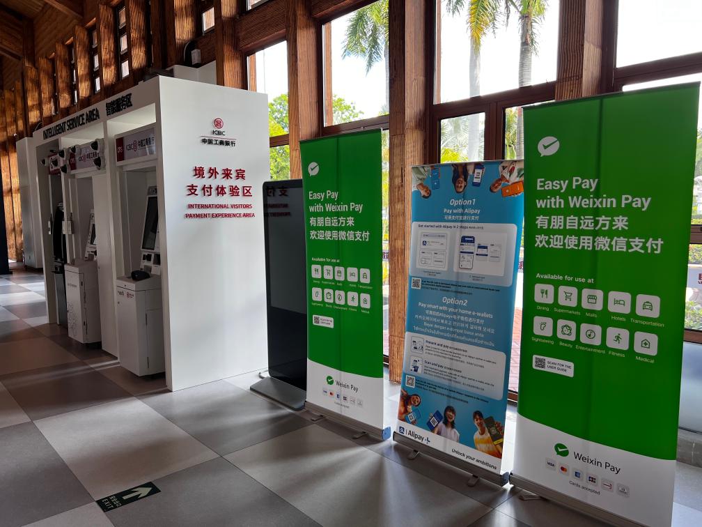 7月14日,三亚凤凰国际机场的支付指引牌。新华社记者 陈子薇 摄