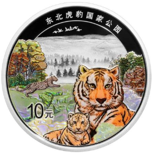 30克圆形银质纪念币背面图案为东北虎、东北豹、红松、白桦等元素装饰组合设计,并刊“东北虎豹国家公园”字样及面额,最大发行量60000枚。