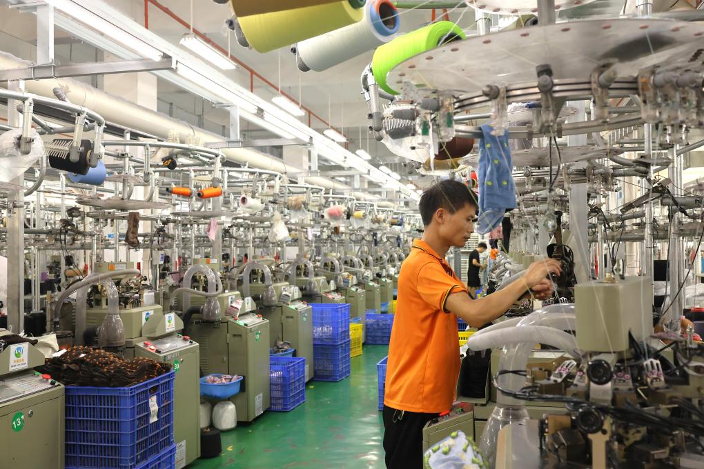 一家袜业工厂内,技术工人正在操作机器。新华社记者 林胜概 摄