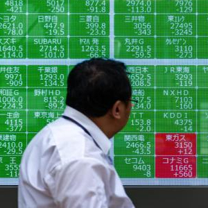 8月2日,在日本东京,行人经过一处股指信息电子显示屏。新华社记者 张笑宇 摄