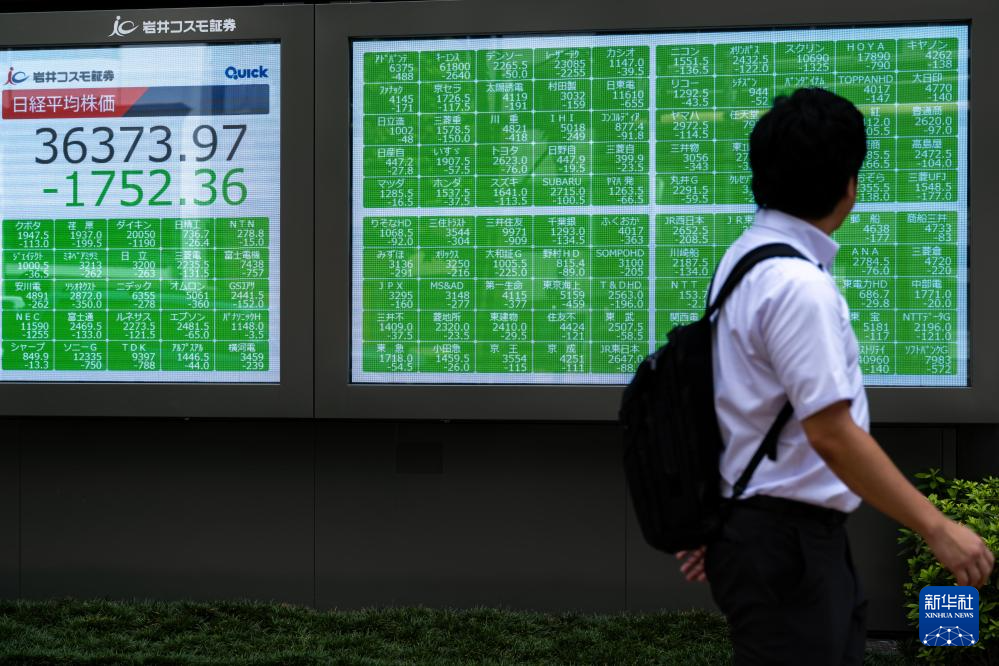 这是8月2日在日本东京拍摄的一处股指信息电子显示屏。新华社记者 张笑宇 摄