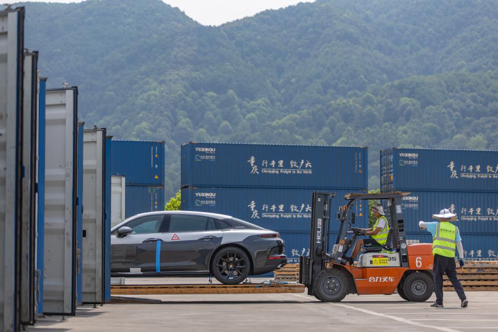 8月5日,在重庆国际物流枢纽园区内的重庆铁路口岸,工作人员对进口整车进行掏箱作业。新华社记者 黄伟 摄