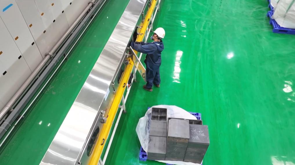 走进生产车间,从原料混合研磨到喷雾干燥、保护烧结,再到粉碎包装,全自动生产线高效运转,车间整洁有序。而在另一端的办公区调控室,工作人员通过远程监控系统,关注设备的温度、湿度,以及生产进程等各项数据。传统设备所需的一机一人在这里升级为六机仅需一人。人机协同的制造场景与工艺设备的优化极大提升了生产效率。