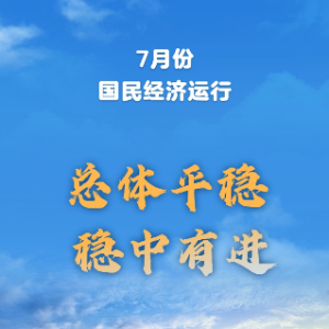 15日,国家统计局发布数据显示,7月份国民经济运行总体平稳、稳中有进,生产需求继续恢复,新动能继续培育壮大,高质量发展扎实推进。