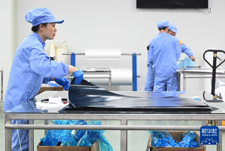 在吉林化纤集团汽车轻量化车间,工人们正在进行复合材料的生产。(8月2日摄)新华社记者 李贺摄