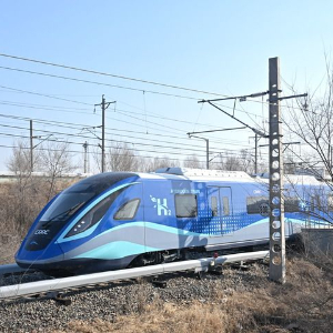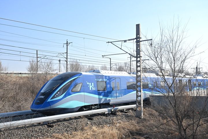 2024年3月21日,我国首列氢能源市域列车在位于长春的中车长客试验线进行运行试验。新华社发(中车长客股份公司提供)