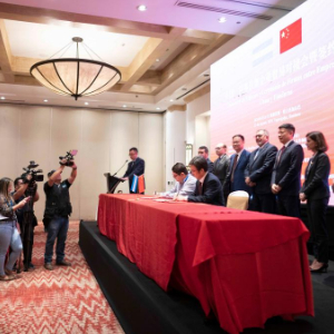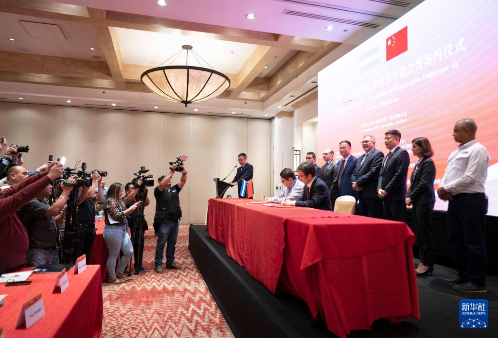 8月23日,中国和洪都拉斯企业代表在 “中国-洪都拉斯企业贸易对接会暨签约仪式”上签约。新华社发(戴维·德拉帕斯摄)