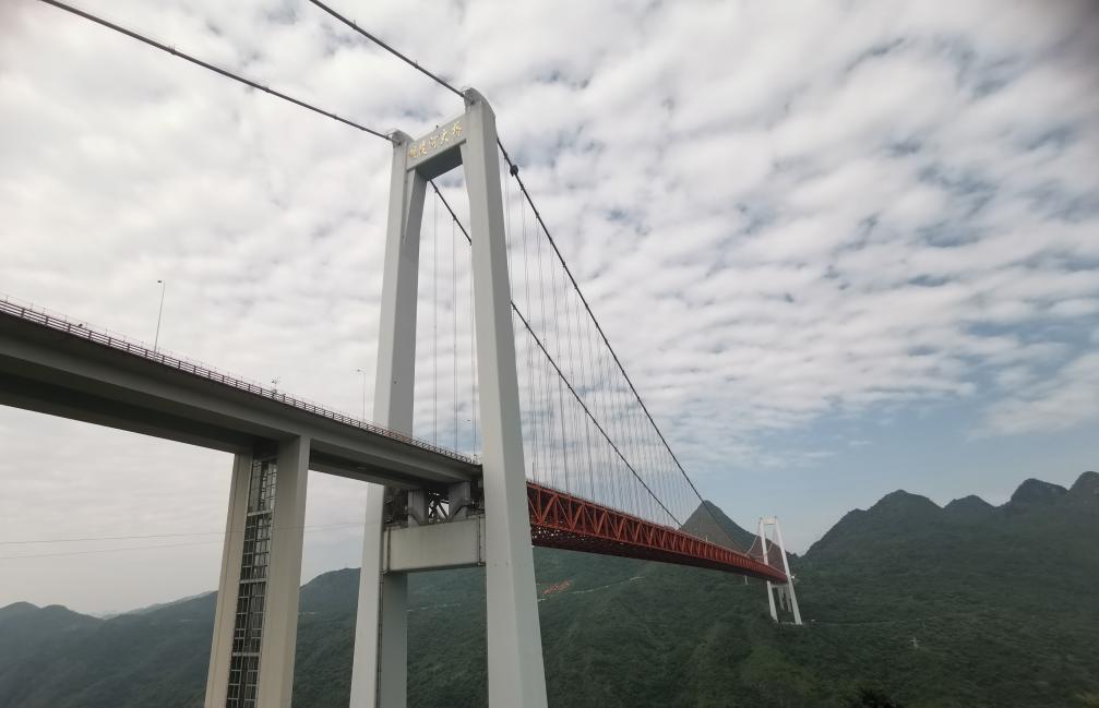 午后交通繁忙,我登上了与地面落差370米高的坝陵河大桥,它是中国为数不多可进入桥体内部观光的大型桥梁之一。从桥上俯瞰,可以观赏沿着山谷静静流淌的坝陵河,远眺则是连绵青翠的山脉。