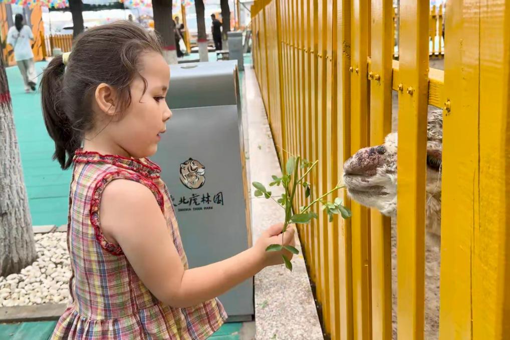 英国游客阿利斯泰尔的女儿在位于哈尔滨的东北虎林园游玩(7月23日摄)。新华社记者 杨思琪 摄