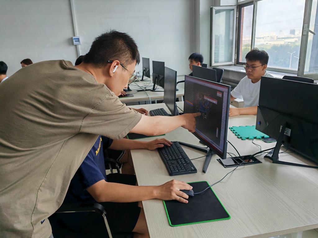 8月29日,吉林省羽沣汽车装备技术有限公司的工程师尹烈(左一)正指导学生设计白车身非标焊装装备。新华社记者李双溪 摄