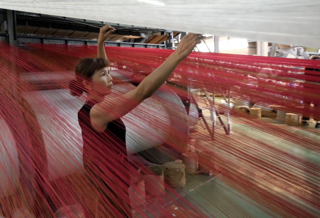 天津市武清区新发地毯有限公司员工在生产车间工作。新华社记者 王宁 摄