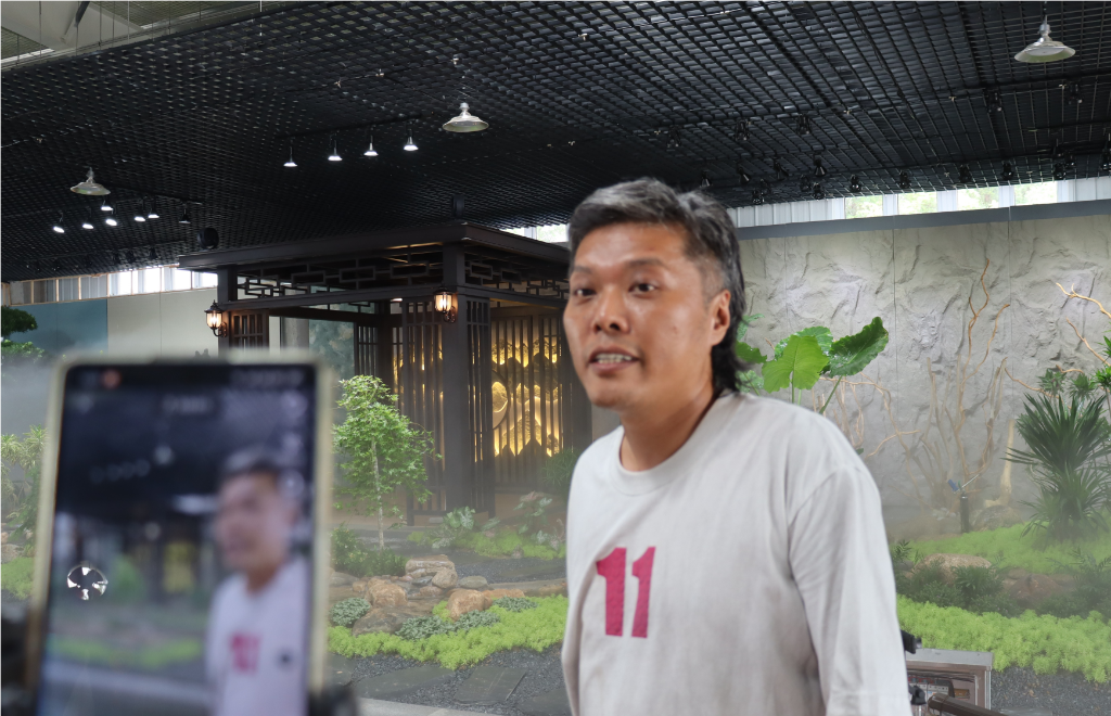 走进位于“绿色”三产融合片区的庆祥伟业观赏鱼养殖基地,一个硕大的池子内游动着许多花色各异的锦鲤,配合着喷洒装置制造的烟雾缭绕效果,几名工作人员正通过手机向客户推销着各类观赏鱼。