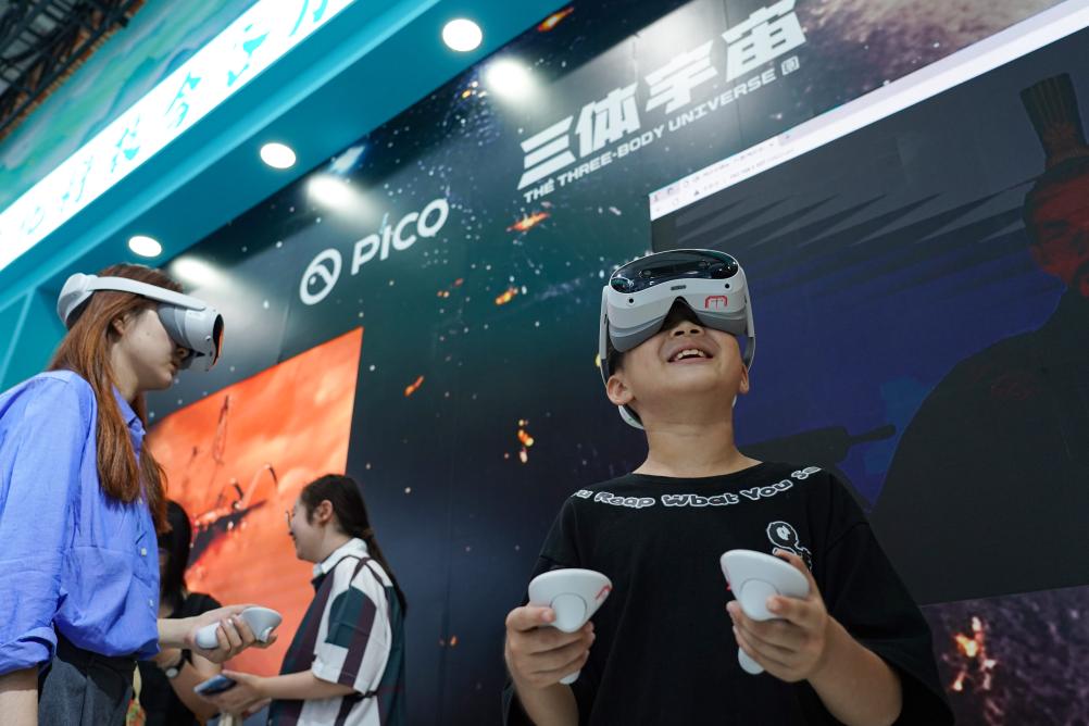 9月13日,一名小朋友在首钢园区文旅服务专题展区体验混合现实一体机。新华社记者 陈钟昊 摄