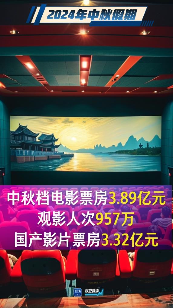 国家电影局18日发布数据,2024年中秋档电影票房为3.89亿元,国产影片票房为3.32亿元,占比为85.35%。