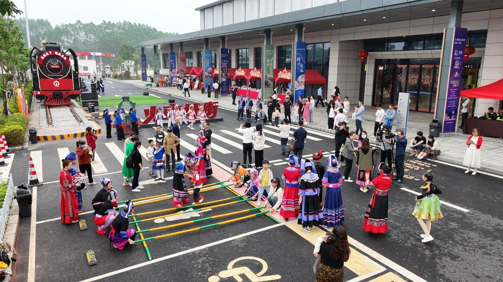 走进广西南横高速飞龙服务区,火车圩街上分外热闹,横州茉莉花茶、南乡大头菜、土鸡土鸭、木瓜丝、横州鱼生等特色农产品摆放井然有序,成串的茉莉花散发着沁人心脾的香味。