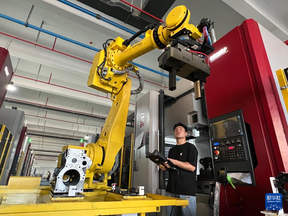 在星月集团新扩建的厂房,一排排全自动化的机械手臂串联起各个工序(8月15日摄)。新华社记者 唐弢 摄