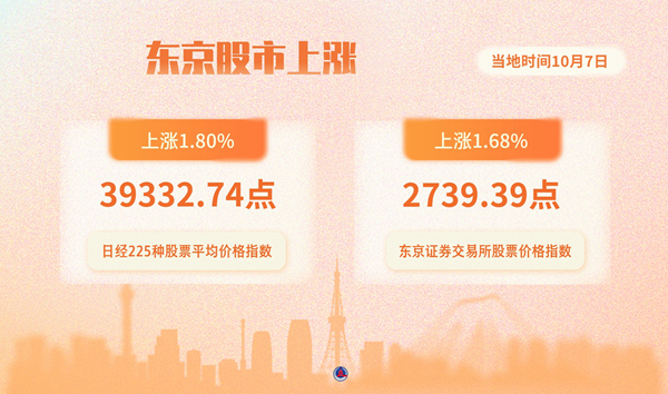 新华社东京10月7日电(记者刘春燕 欧阳迪娜)东京股市两大股指7日明显上涨。日经225种股票平均价格指数收盘上涨1.80%;东京证券交易所股票价格指数上涨1.68%。