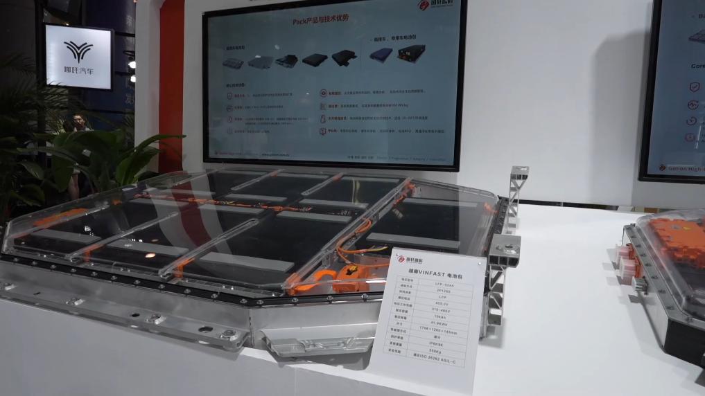在东博会新能源及智能网联汽车展区,国轩高科股份有限公司正在展示应用于越南VINFAST品牌新能源汽车的电池包。