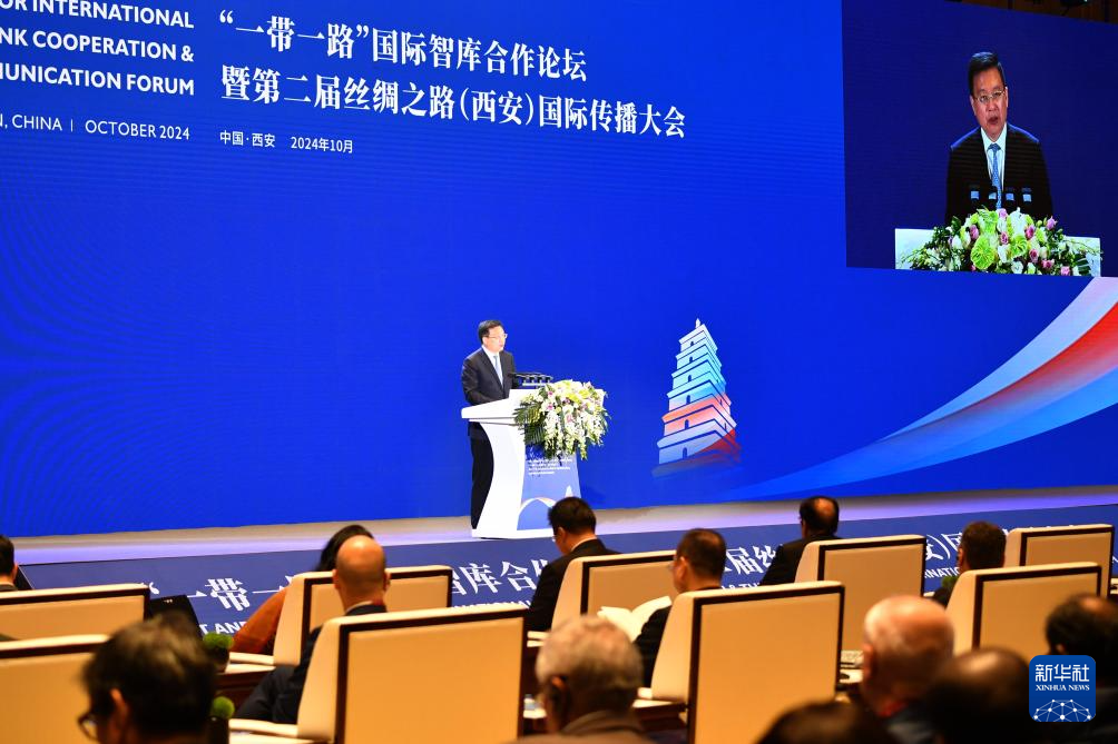 新华社西安10月15日电(记者张思洁、李亚楠)“一带一路”国际智库合作论坛暨第二届丝绸之路(西安)国际传播大会15日在陕西省西安市开幕。本次论坛以“高质量共建‘一带一路’,助力世界各国现代化”为主题,来自50个国家的300余名驻华外交官、智库专家、媒体记者等开展交流讨论。