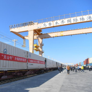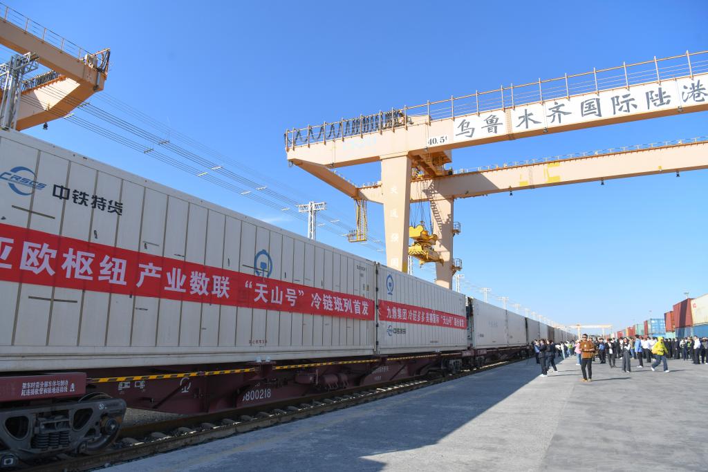 今年6月,新疆、重庆携手共建西部陆海新通道联运班列,从乌鲁木齐国际陆港区中欧班列集结中心驶出,搭载新疆地产番茄酱等商品,经由重庆发往东南亚国家,全程运行时效较传统散发运输提升50%。