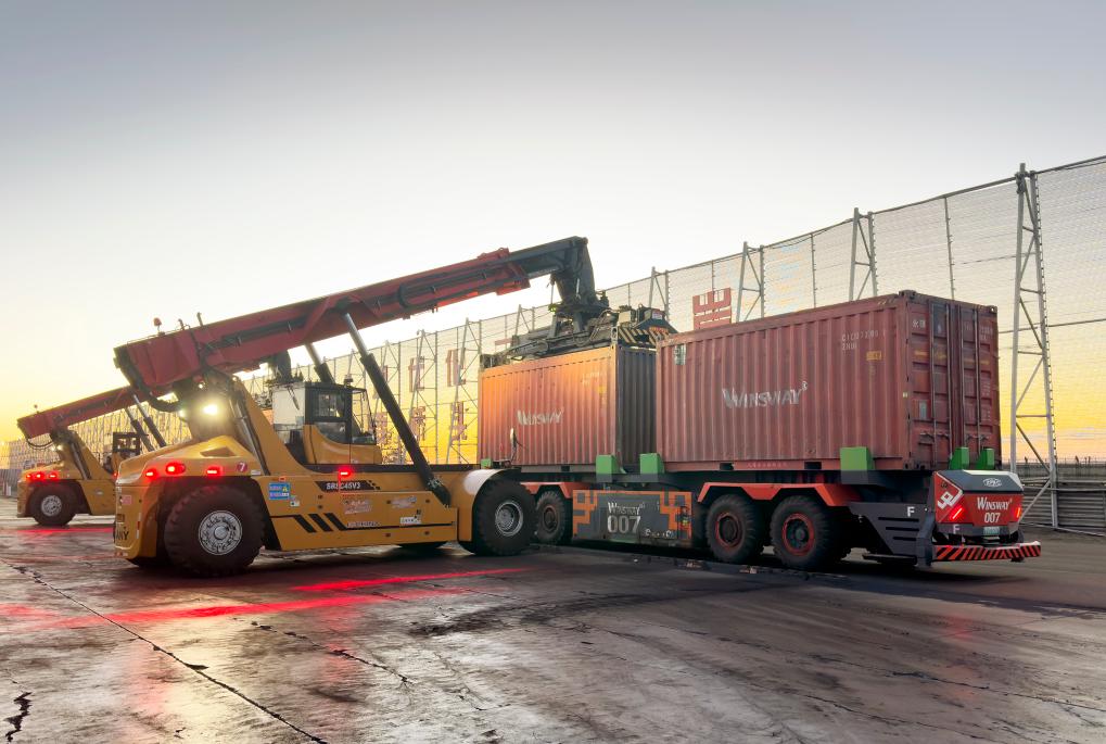 “AGV自动导引车从蒙古国数字化集装箱港吊装上货物,再沿着跨境封闭公路自动行驶,入境后停在专用海关监管作业场所卸货,交互往返,使通关效能进一步提升。”呼和浩特海关所属乌拉特海关监管一科副科长葛磊说。