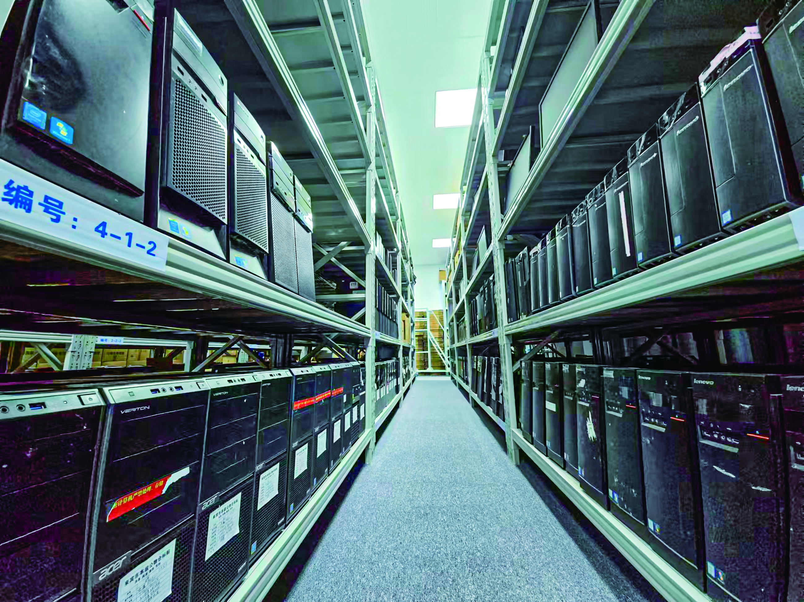 图为广西来宾市实体公物仓中的闲置电脑。本组图片均为受访者供图