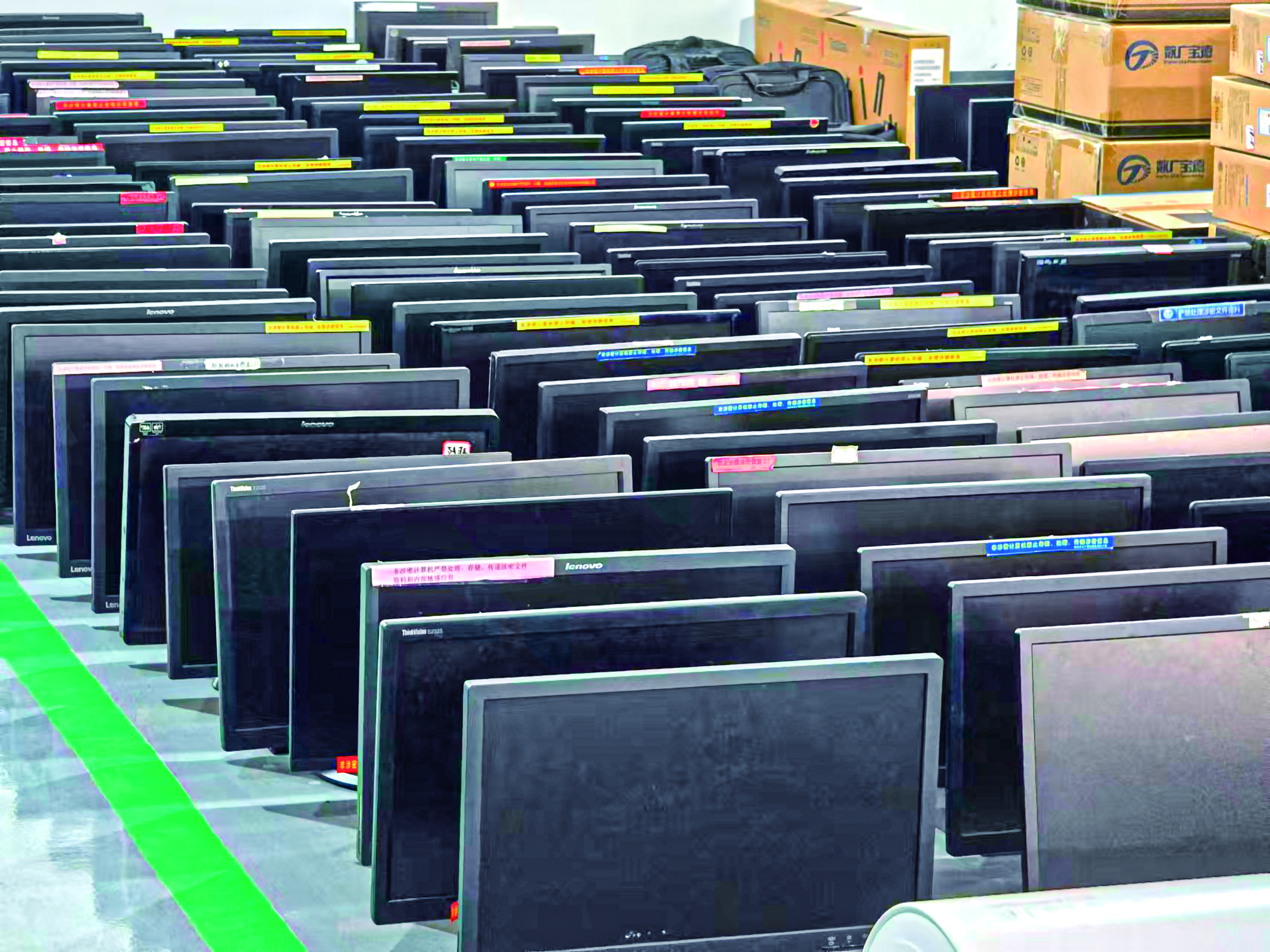 图为广西来宾市实体公物仓中的闲置显示器。