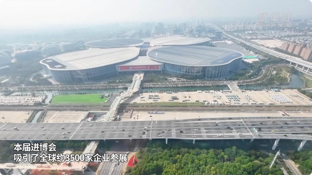 11月5日至10日,第七届中国国际进口博览会在上海举行,进博会的举办地国家会展中心(上海)从空中俯瞰宛若“四叶草”的形状,新华社记者乘坐上海市公安局警务航空队的直升机带你从空中俯瞰这座超大型的展览综合体。