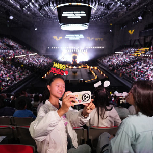2024年10月3日,观众来到首钢园区观看世界乒乓球职业大联盟(WTT)中国大满贯赛。新华社记者 张晨霖 摄