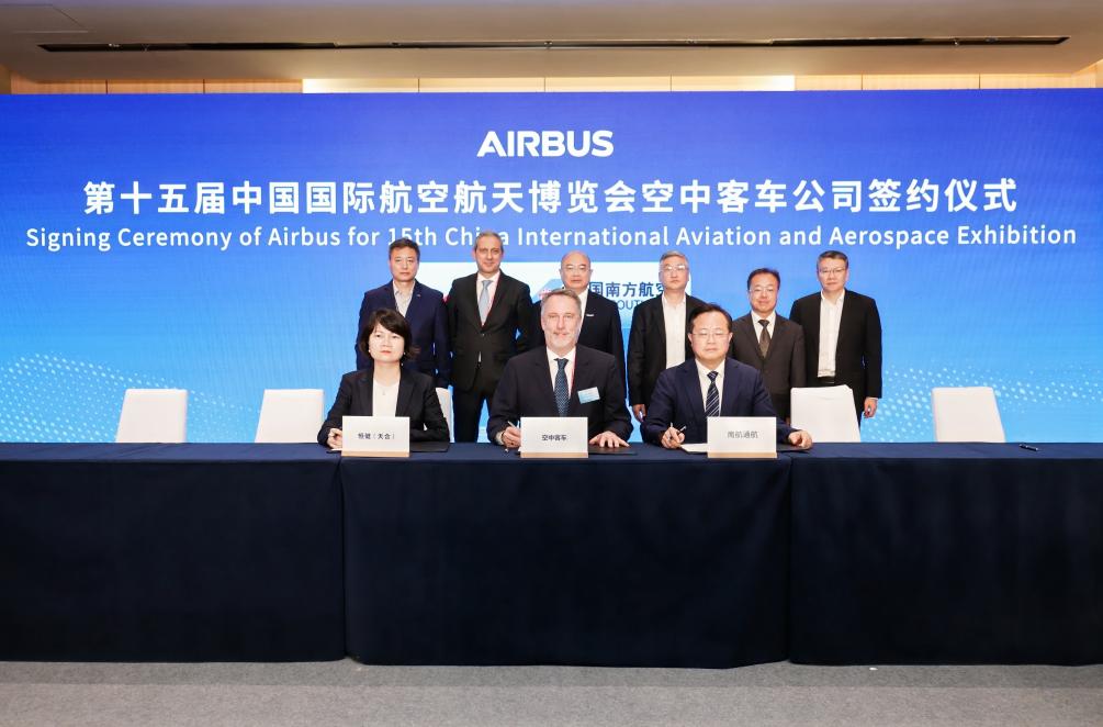 11月12日,在广东珠海举办的第十五届中国国际航空航天博览会上,空中客车与中国合作伙伴签署一系列合作协议。新华社发