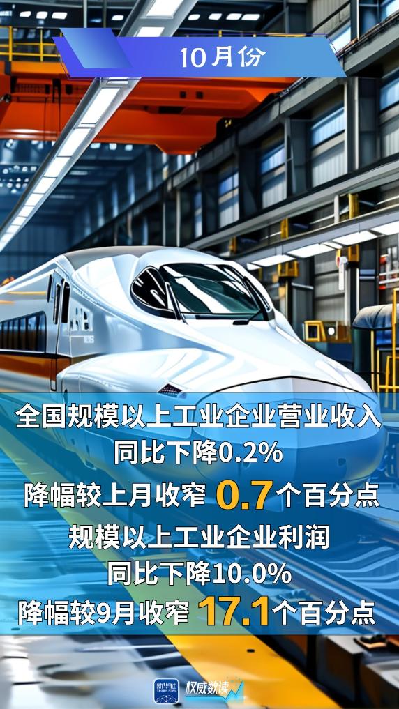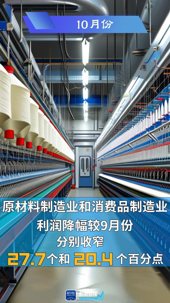 国家统计局工业司统计师于卫宁表示,10月份,随着存量政策及一揽子增量政策协同发力、持续显效,规模以上工业企业生产稳定增长,企业利润当月降幅明显收窄。多数行业盈利较上月好转,装备制造业和高技术制造业等新动能支撑作用较强,原材料制造业和消费品制造业利润降幅大幅收窄。