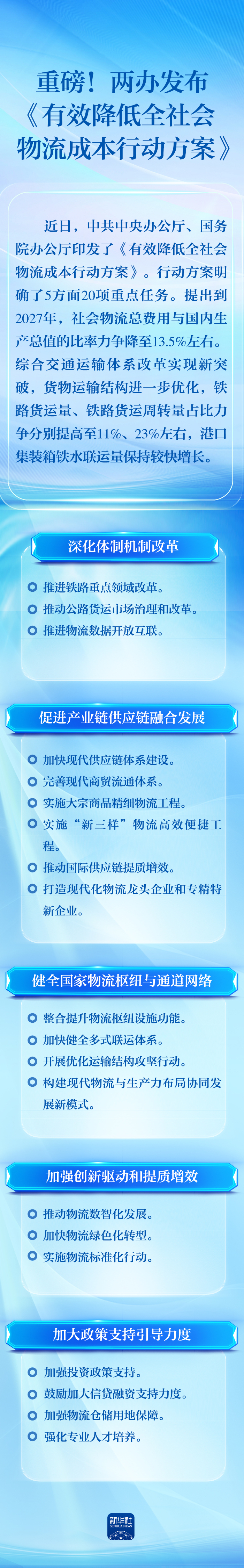 一图读懂丨两办发布《有效降低全社会物流成本行动方案》,事关你我他!-新华网