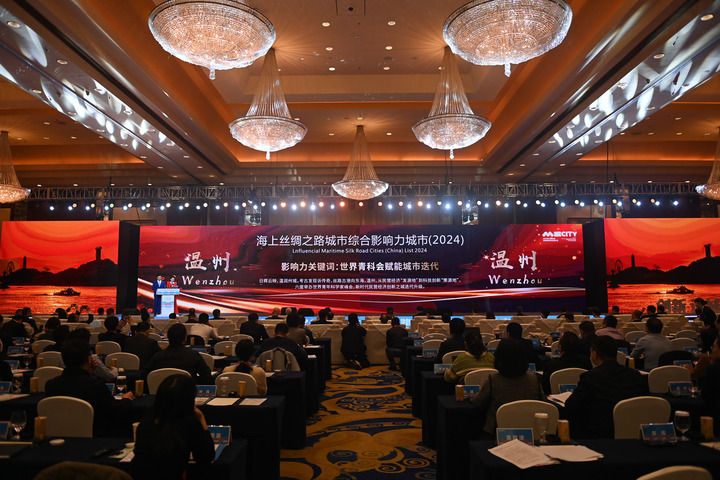 11月30日,“海上丝绸之路城市综合影响力指数报告(2024)——中国城市篇”在大会上发布。 当日,以“相知相近 合作共赢——创新,让城市更美好”为主题的2024海上丝绸之路城市影响力市长交流大会在浙江省温州市举办。新华社记者 黄宗治 摄