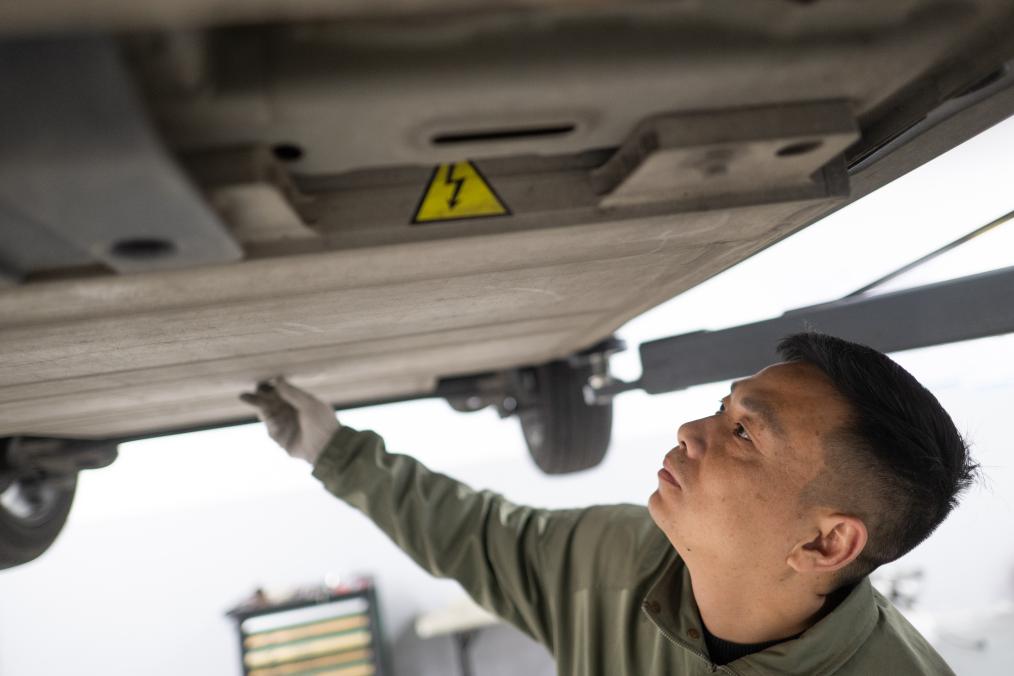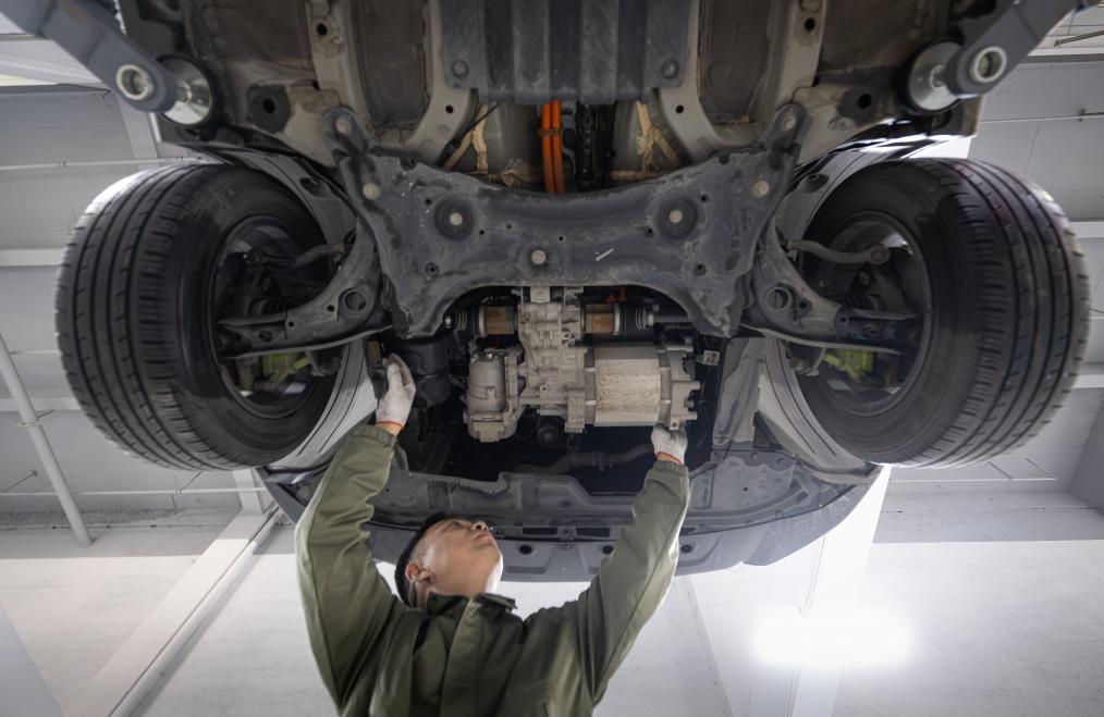12月5日,李培伟在检查一辆新能源汽车的电池。