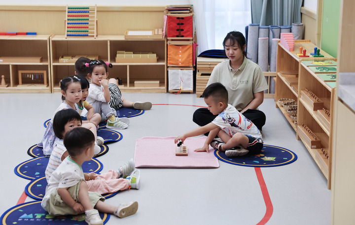 2024年8月20日,在嘉兴市南湖区东栅街道的一家托育机构里,小朋友在上课。新华社记者 徐昱 摄