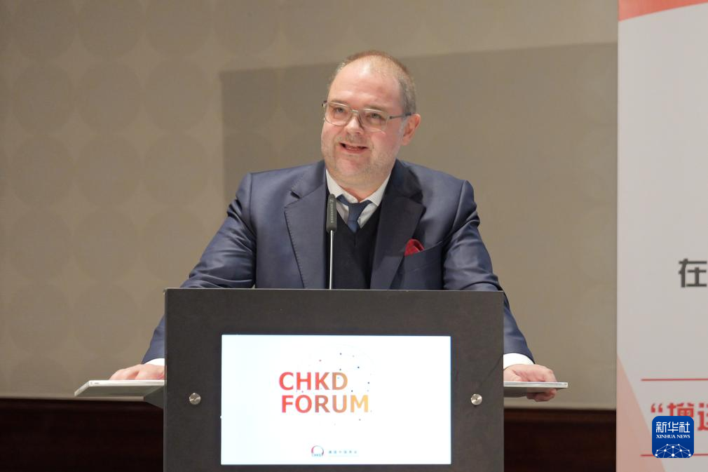 12月5日,德国联邦劳动及社会事务部国际劳动及社会政策司司长卡斯顿·施滕德尔在柏林举行的德国中国商会2024年度论坛上发表讲话。新华社记者 邰思聪 摄