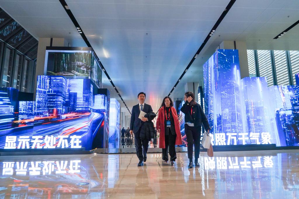 12月19日,参会者行走在世界显示产业创新发展大会会场。新华社记者 唐文豪 摄